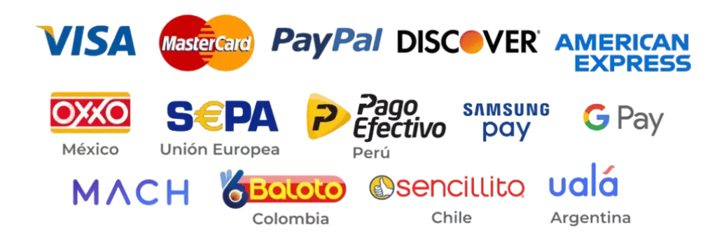 México (Oxxo) Chile (Sencillito) Perú (PagoEfectivo) y Argentina (RapiPago), Colombia (Efecty)